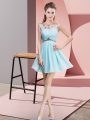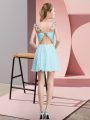 New Arrival Mini Length Empire Sleeveless Light Blue Prom Party Dress Backless