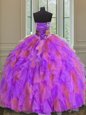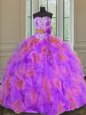 New Arrival Multi-color Sweetheart Neckline Beading and Ruffles and Sashes|ribbons and Hand Made Flower 15 Quinceanera Dress Sleeveless Lace Up