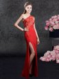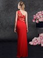 New Arrival One Shoulder Sleeveless Side Zipper Floor Length Lace and Appliques Mother Of The Bride Dress