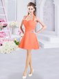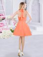New Arrival Orange A-line Halter Top Sleeveless Chiffon Mini Length Zipper Ruching Wedding Guest Dresses