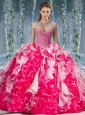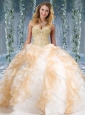 New Arrival Organze and Rolling Flowers Big Puffy Quinceanera Dress in Champagne and White