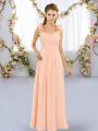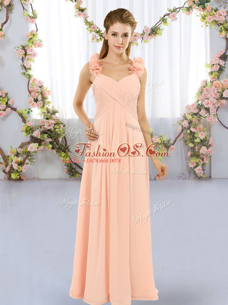 New Arrival Peach Chiffon Lace Up Bridesmaid Dresses Sleeveless Floor Length Hand Made Flower