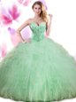 New Arrival Pick Ups Sweetheart Sleeveless Lace Up Vestidos de Quinceanera Apple Green Tulle