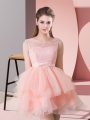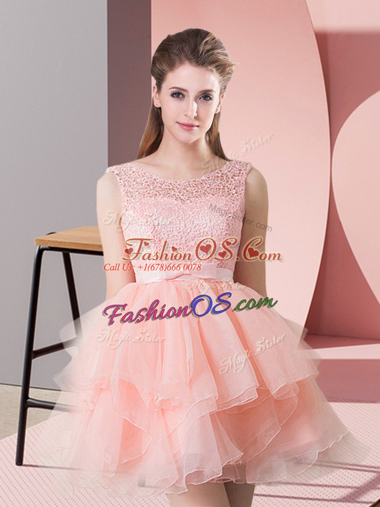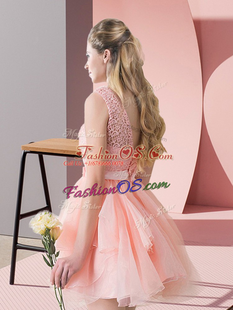 New Arrival Pink A-line Lace Prom Dress Lace Up Organza Sleeveless