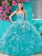 New Arrival Puffy Skirt Ruffled and Beaded Quinceanera Dress in Turquoise