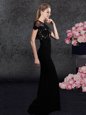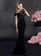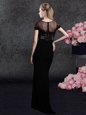 New Arrival Scoop Black Zipper Mother Of The Bride Dress Appliques and Sequins Short Sleeves With Train Sweep Train