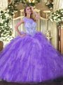 New Arrival Scoop Sleeveless Zipper Quinceanera Gown Lavender Organza