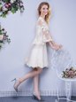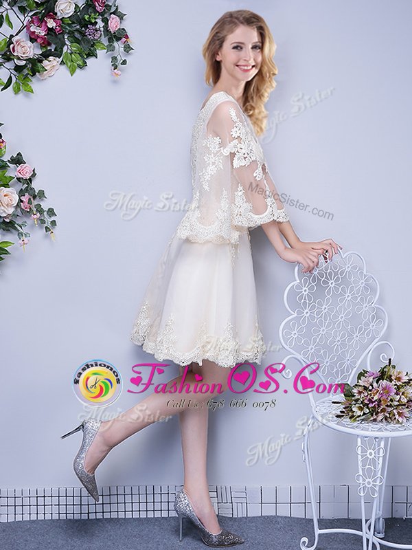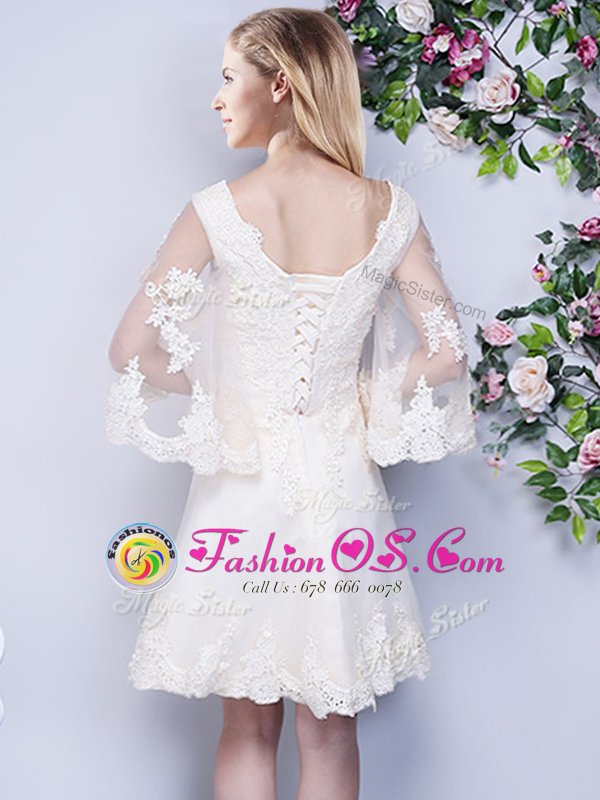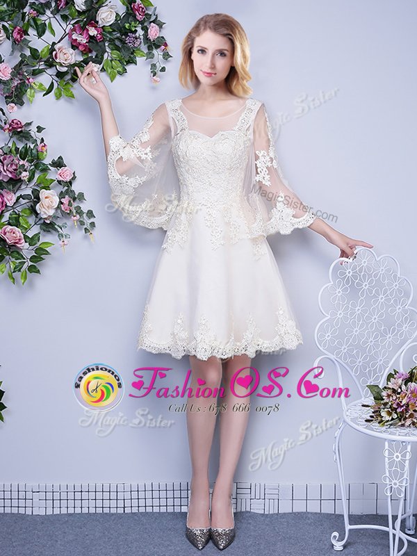New Arrival Scoop White 3|4 Length Sleeve Lace Knee Length Quinceanera Court Dresses