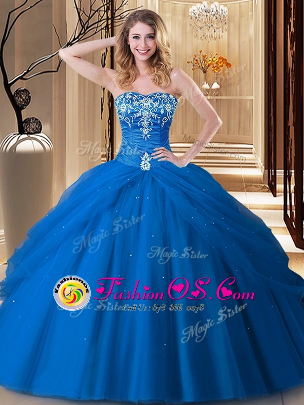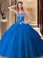 Home >  Quinceanera Dresses >  Cheap Quinceanera Dresses > New Arrival Sleeveless Tulle Floor Length Lace Up Quinceanera Dresses in Royal Blue for with Embroidery