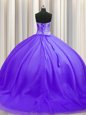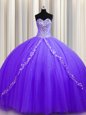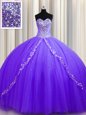 New Arrival Sleeveless Tulle Sweep Train Lace Up Sweet 16 Dress in Lavender for with Beading
