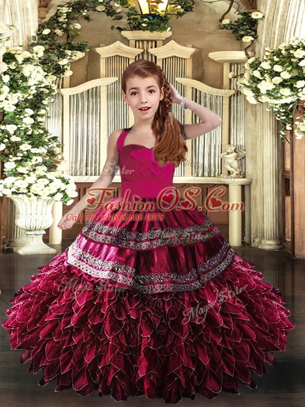 Home >  Special Occasion Dresses >  Pretty Little Girl Pageant Dresses > New Arrival Straps Sleeveless Organza Girls Pageant Dresses Appliques and Ruffles Lace Up