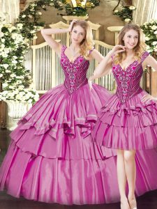 Home >  Quinceanera Dresses >  Detachable Quinceanera Skirts > New Arrival V-neck Sleeveless Lace Up Quinceanera Gown Fuchsia Organza