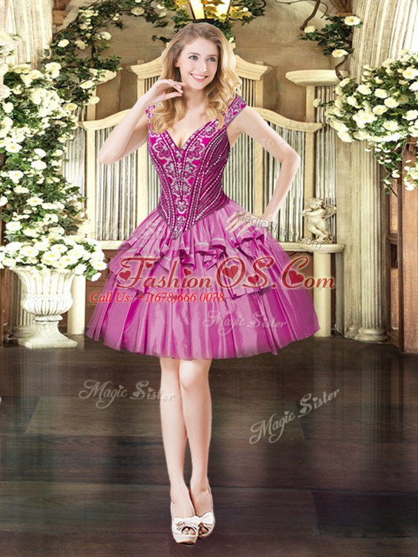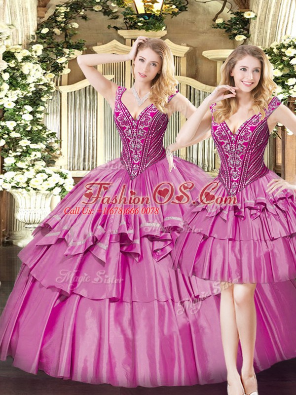 New Arrival V-neck Sleeveless Lace Up Quinceanera Gown Fuchsia Organza