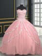 Home >  Quinceanera Dresses >  Custom Made Quinceanera Dresses > New Arrival With Train Pink Sweet 16 Dresses Sweetheart Sleeveless Brush Train Lace Up