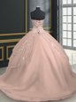 New Arrival With Train Pink Sweet 16 Dresses Sweetheart Sleeveless Brush Train Lace Up