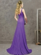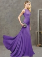 Home >  Prom Dresses >  Modest Prom Dresses > New Arrivals Bateau Brush Train Purple Modest Prom Dress with Button Up