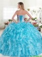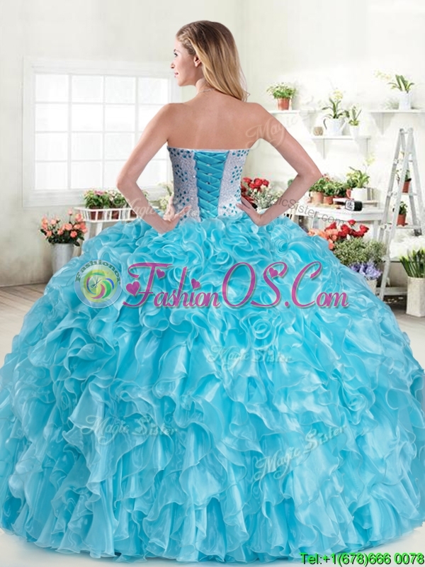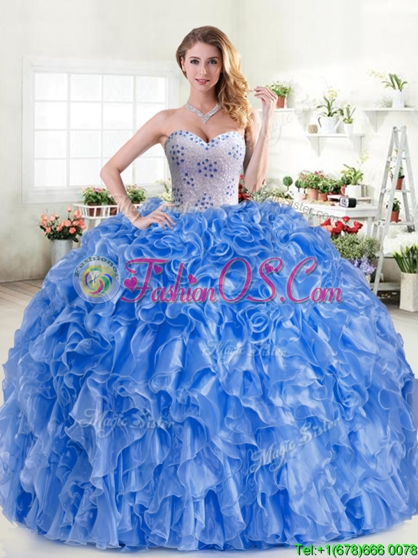 New Arrivals Beaded and Ruffled Blue Quinceanera Dress in Organza