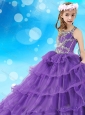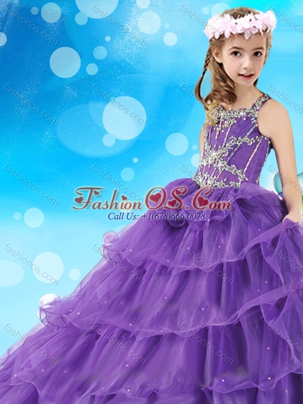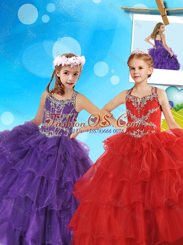 New Arrivals Beaded and Ruffled Layers Little Girl Pageant Dress with Straps