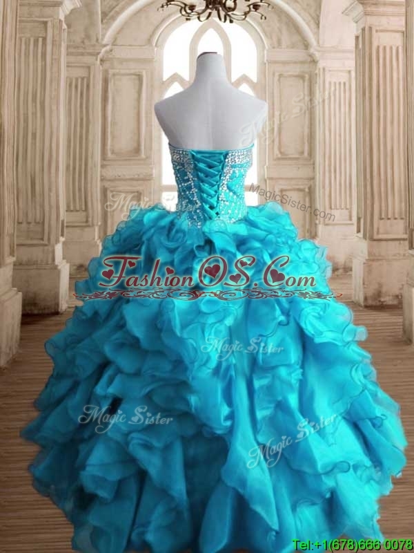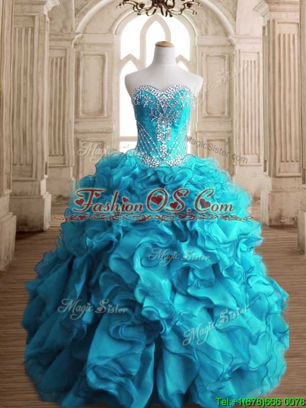 Home >  Quinceanera Dresses >  In Stock Quinceanera Dresses > New Arrivals Beaded and Ruffled Quinceanera Dress in Teal