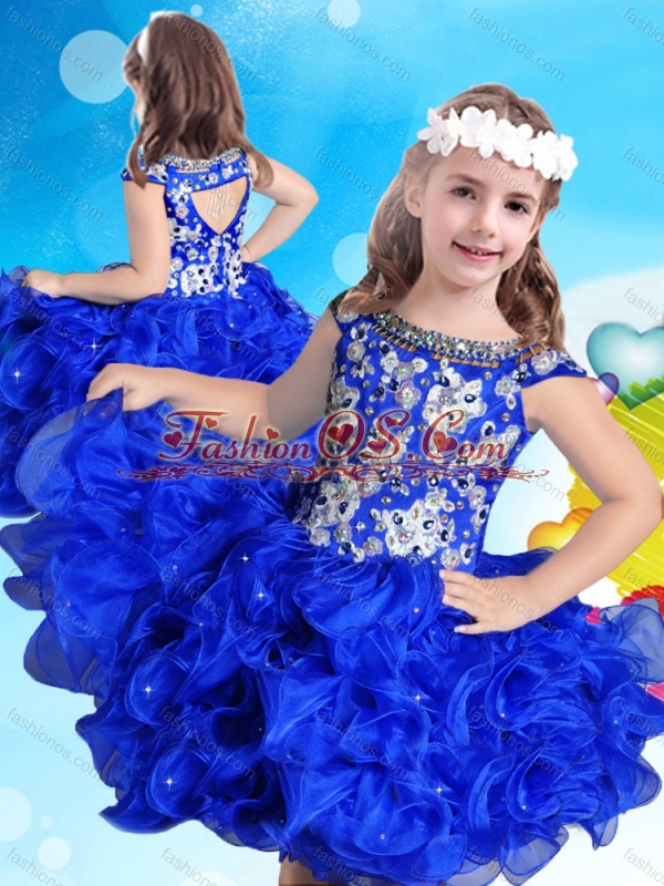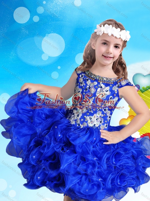 Home >  Special Occasion Dresses >  New Style Little Girl Pageant Dresses > New Arrivals Beaded and Ruffled Scoop Little Girl Pageant Dress in Royal Blue