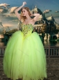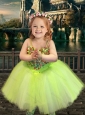 New Arrivals Beaded Really Puffy Modest Prom Dress in Yellow Green and Classical Spaghetti Straps Little Girl Dress with Beading