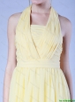 New Arrivals Halter Top Yellow Prom Dresses with Brush Train 2015