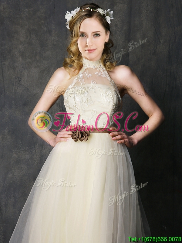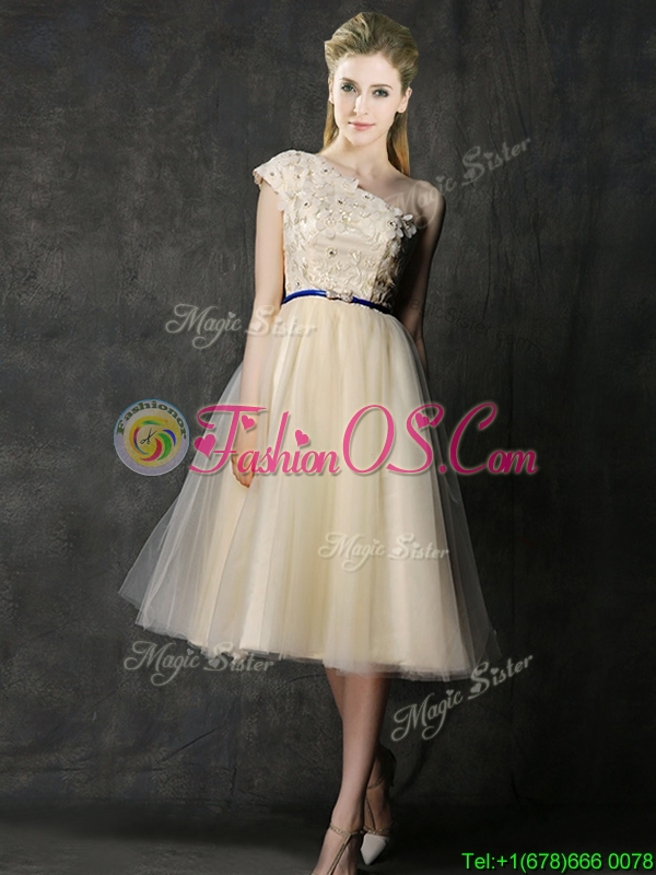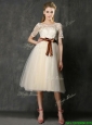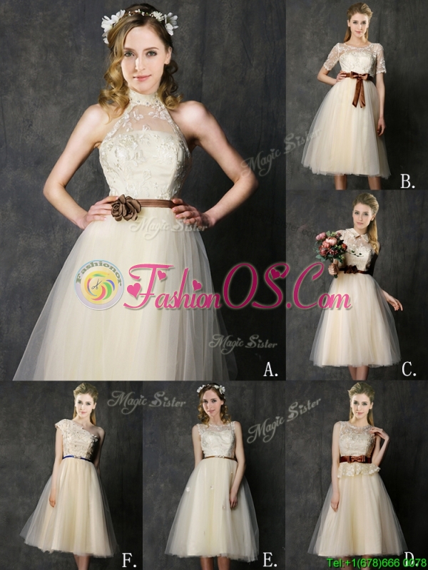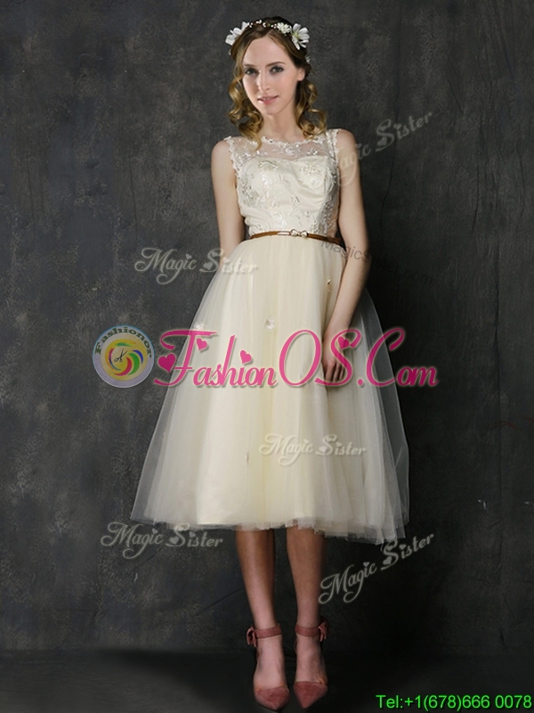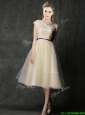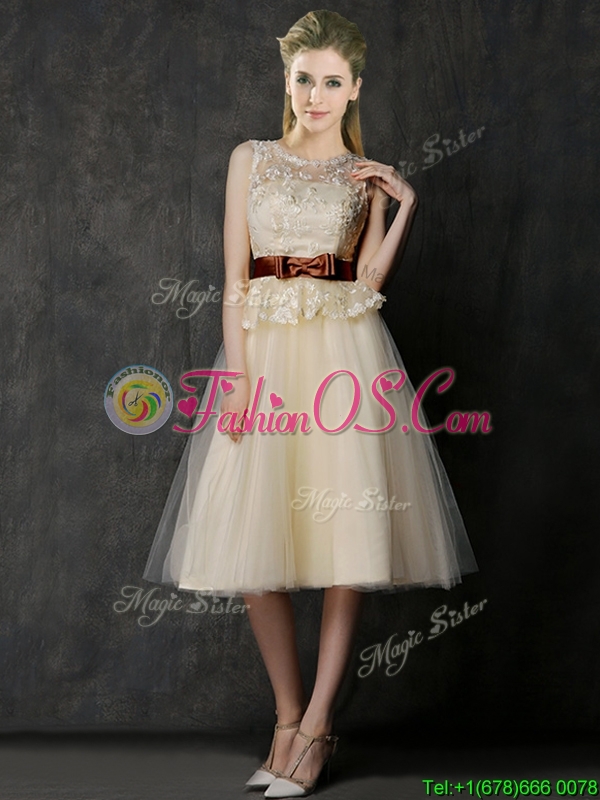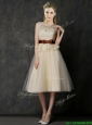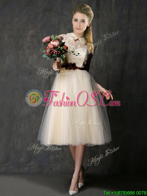 New Arrivals Knee Length Champagne Dama Dress with Lace