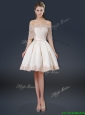 New Arrivals Off the Shoulder Appliques Champagne Short Prom Dresses