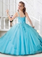 New Arrivals Puffy Skirt Straps Aqua Blue Mini Quinceanera Dress in Organza