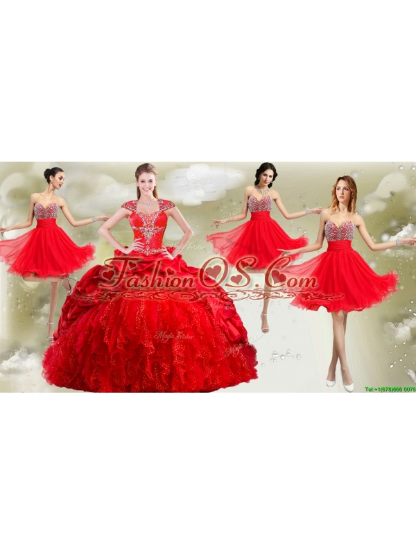Home >  Quinceanera Dresses >  Quinceaneara Package > New Arrivals Red Big Puffy Quinceanera Dress and Wonderful Rhinestoned and Ruched Dama Dresses