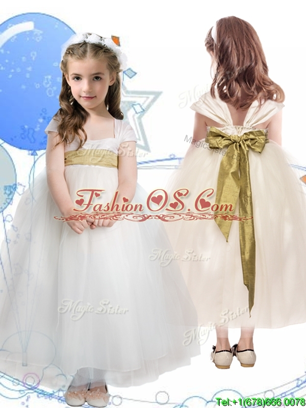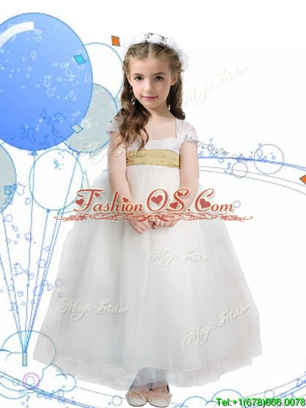 New Arrivals Square Cap Sleeves Little Girl Pageant Dress with Sashes