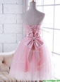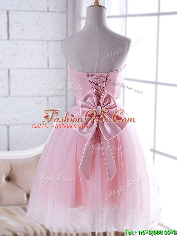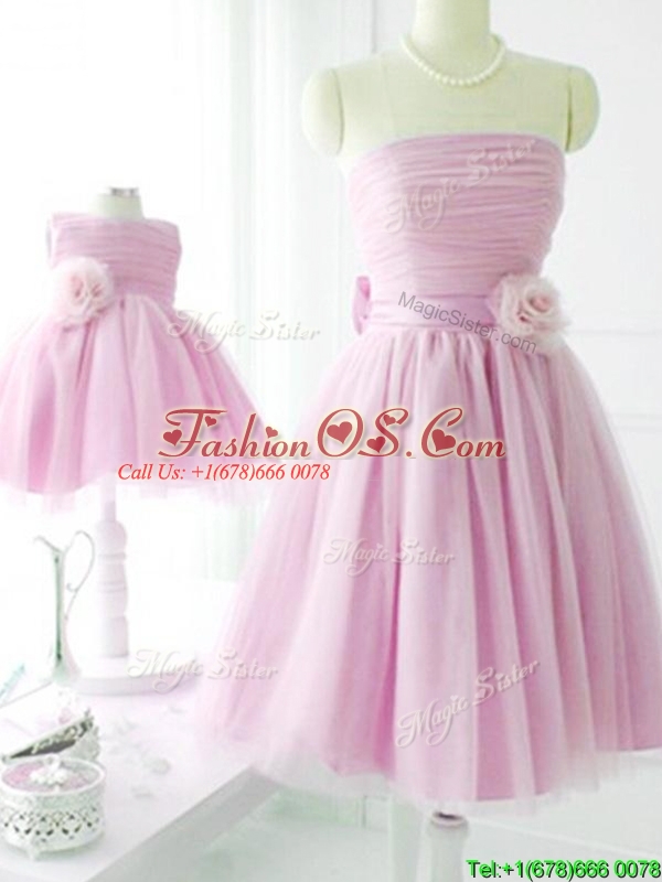New Arrivals Strapless Baby Pink Bridesmaid Dress with Handcrafted Flower