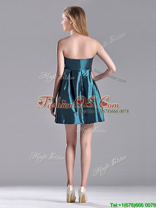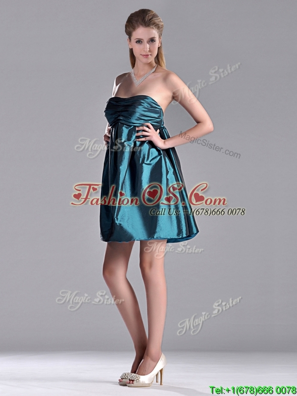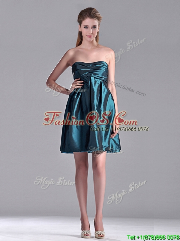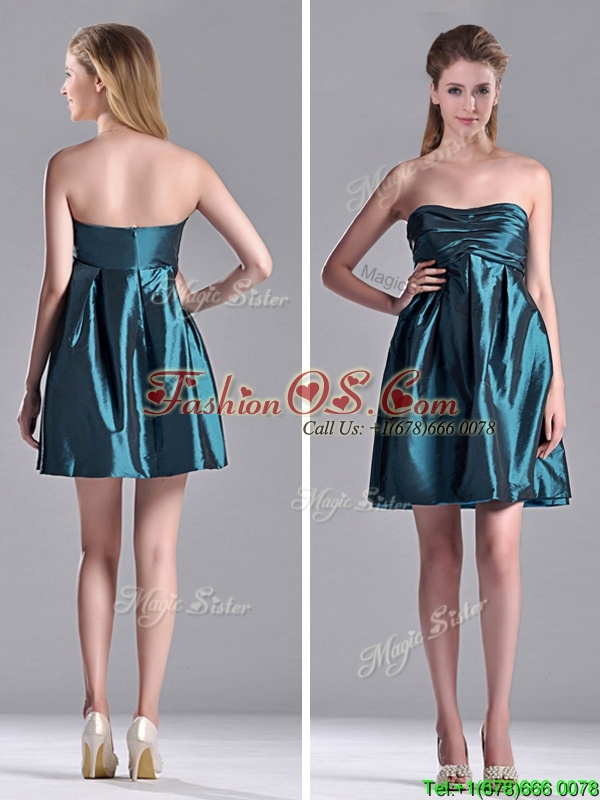 Home >  Bridesmaid Dresses >  Cheap Bridesmaid Dresses > New Arrivals Strapless Ruched Taffeta Short Bridesmaid Dress in Teal