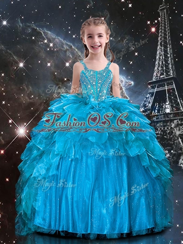 New Arrivals Straps Little Girl Pageant Dresses with Beading in Blue