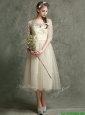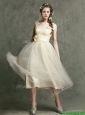 New Arrivals Tea Length Tulle Prom Dress in Champagne 105.78