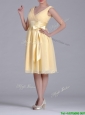 New Arrivals V Neck Bowknot Chiffon Short Mother of the Bride Dress in Yellow