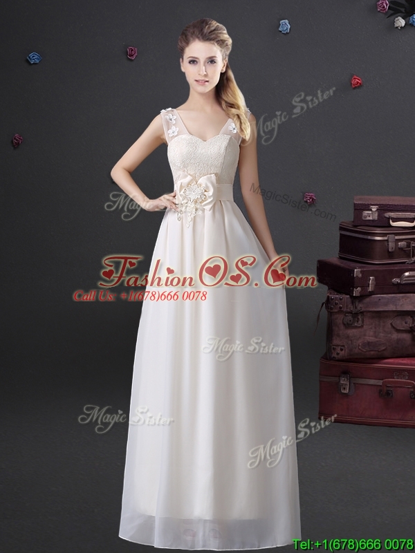 Home >  Prom Dresses >  Perfect Prom Dresses > New Arrivals V Neck Laced Prom Dress with Appliques and Bowknot