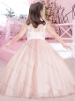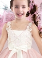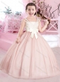 New Baby Pink and White Flower Girl Dress with Appliques and Bowknot