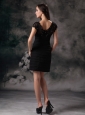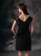 Home >  Special Occasion Dresses >  Little Black Dresses > New Black Column / Sheath V-neck Little Black Dress Satin Beading and Lace Mini-length