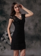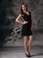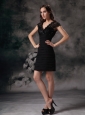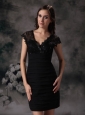 New Black Column / Sheath V-neck Little Black Dress Satin Beading and Lace Mini-length