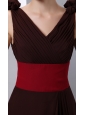 New Brown Column V-neck Ruch Mother Of The Bride Dress Brush Train Chiffon
