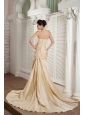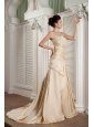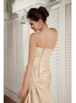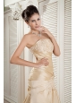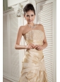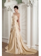 New Champagne A-line Strapless Prom / Evening Dress Satin Appliques Court Train