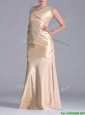 New Column Beaded Decorated One Shoulder Prom Dress in Champagne