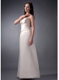 New Off White Cloumn Strapless Bridesmaid Dress Satin Ruch Ankle-length