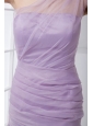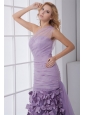 New One Shoulder Lilac Ruching Brush Train Organza Prom Dress with Side Zipper