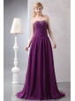 New Purple Empire Strapless Beading Mother Of The Bride Dress Brush Train Chiffon