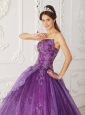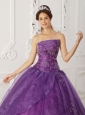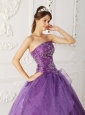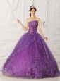 New Purple Quinceanera Dress Strapless Satin and Organza Beading Ball Gown