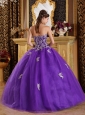 New Purple Quinceanera Dress Sweetheart Appliques Tulle Ball Gown