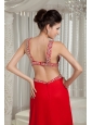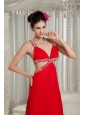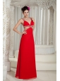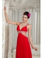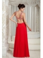 New Red Empire Evening Dress Straps Chiffon Beading Floor-length