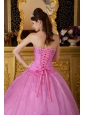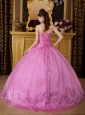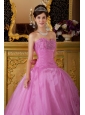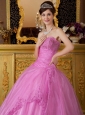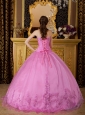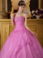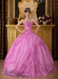 New Rose Pink Quinceanera Dress Sweetheart Appliques Organza Ball Gown